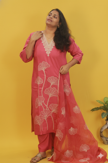 Step into any formal event with unforgettable elegance in our exquisite Brick Red Heavy Cotton 3-Piece Set. This ensemble is the perfect marriage of traditional craftsmanship and contemporary style, designed for the woman who commands attention with her grace.