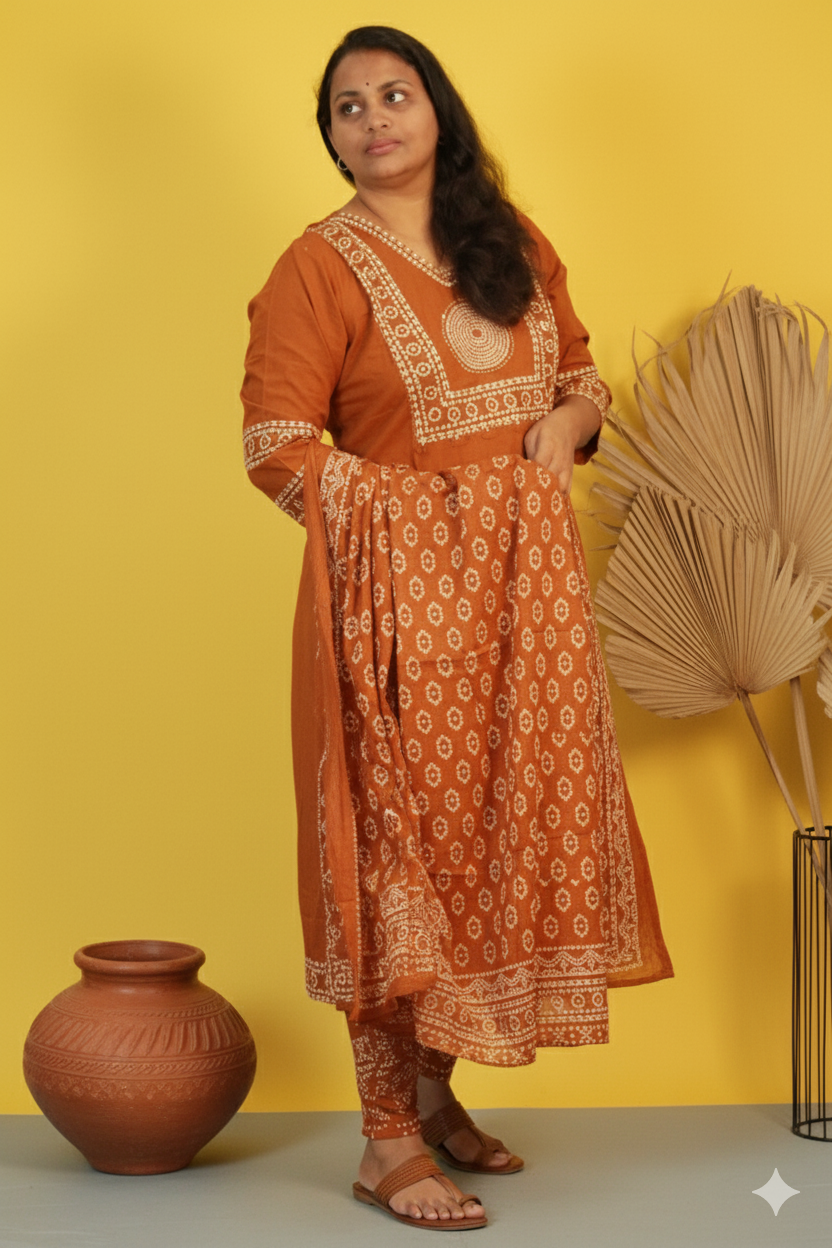 Statement Dupatta: The set is completed with a generous 2.2-meter Bandhani printed dupatta. Its beautiful pattern and flowy texture instantly elevate the entire look, ensuring you stand out with grace.