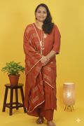 Rust Orange & Gold Roman Silk Kurta Set: Timeless Grace.