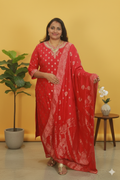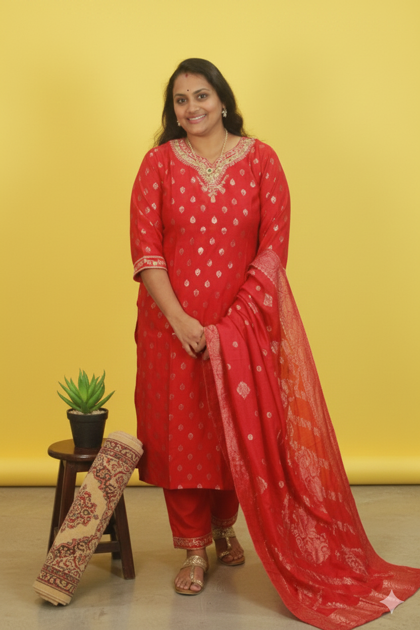 This is more than just an outfit; it's an heirloom in the making. The beautiful tension between the soft luster of the Viscose silk and the majestic, heavy Banarasi silk of the duppata creates an instantly premium and convincing festive look. It's designed to make you the center of attention without saying a word.