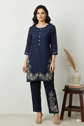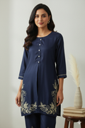 Walk around in elegance with this muslin cotton shiny co-ord set, crafted in a soft, breathable fabric that carries a subtle sheen like a pearl. Adorned with delicate machine embroidery along the hem and pants, this ensemble strikes the perfect balance between comfort and sophistication. Its refined silhouette makes it an ideal choice for office wear, official gatherings, or polished get-togethers. Accessorising it with pearls will make it look even more royal.