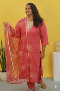 Timeless Elegance: Coral Pink Embroidered Roman Silk Suit
