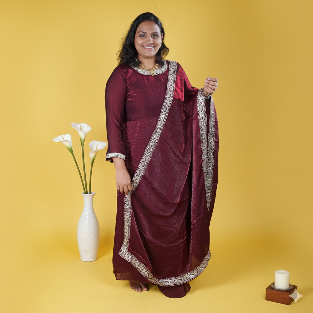 Mesmerizing color and a flowy space silk anarkali, for the aesthetic grandeur lovers.