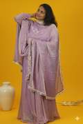 Imagine wearing a lavender sky. Our Swarovski-studded Space Silk Anarkali is a celestial dream, with glittering stars all over and a dupatta with mirror-scalloping that catches every light. It’s the perfect blend of modern elegance and traditional charm, making you feel like you're walking on clouds.